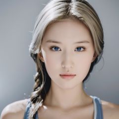 (8k, best quality, masterpiece, ), ultra detailed illustration, extremely detailed face, RAW photo, film grain, skin pores, warm light, cleavage, 1girl, solo, realistic, sky blue eyes, long hair, looking at viewer, lips, simple background, grey background, full shot, blonde hair, hair, **** top, closed mouth, nose<lora:lyf:0.9>