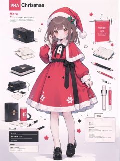 masterpiece, 1girl, ,loli, huge filesize, wallpaper, artbook, brown hair, brown eyes, christmas hat, (full body:1.1), fixing her hair, colorful, character design