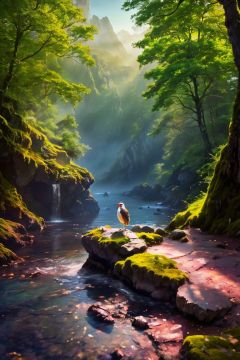 (8k, RAW photo, best quality, masterpiece:1.2),,(super realistic, photo-realistic:1.3), ultra-detailed, extremely detailed cg 8k wallpaper,hatching (texture),skin gloss,light persona,,(crystalstexture skin:1.2), (extremely delicate and beautiful),gh-hd, scenery, no humans, outdoors, nature, tree, sky, forest, mountain, landscape, bird, Sky Fantasy, light master