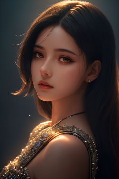 cinematic, fashion photo of a beautiful girl in the style of neomorphism, the transformation of minerals into polymorphs, glowing crystals, hyper detailed, photorealistic, detailed glow, ambient occlusion, side light,light on the face, shadow, light master, Sky Fantasy, light master