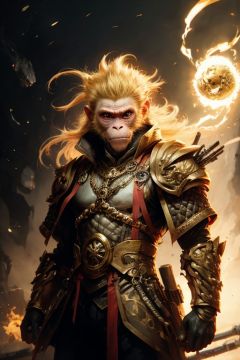 absurdres,1boy,solo,*****,incredibly absurdres,reality,full_shot,<lora:monkey:0.8>,monkey,armor,(golden hair:1.6),