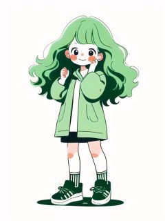 1girl, bangs, blush, blush stickers, brown hair, child, dress, earrings, expressionless, facing viewer, full body, green dress, green hair, hand on own face, hands up, hoodie, in container, jacket, limited palette, long hair, long sleeves, looking at viewer, puffy long sleeves, shadow, shirt, shoes, short sleeves, simple background, smile, socks, solo, standing, tuyagirl, white background,<lora:tuyagirl:1>