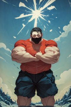 masterpiece,best quality,1 girl, concept art, Psychotic overweight Guy, Muscle pose, Thunderstorm, Regret, F/1.8, dark white and Blue hue, illustration,<lora:nichuanjing-000010:0.6>,8K,HDR