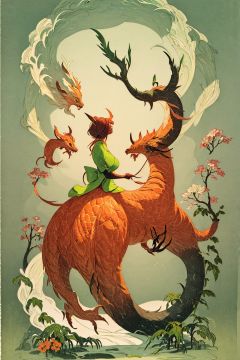 masterpiece,best quality,1girl,8K,HDR,upper_body,<lora:nichuanjing-000010:0.6>,Master's work,masterpiece,Chinese ink wash,watercolor style,light green Chinese dragon,solo,peach blossom forest,snow,orange gfzhidanya background,<lora:中国龙细节:0.6>,