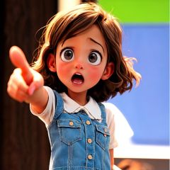 1girl,a surprised expression,pointing to the audience,5 fingers,