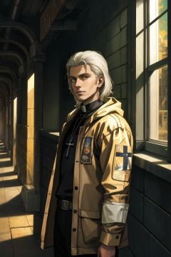 art by Alan Bean, Catholicpunk, Male Nobleman, Awful Platinum hair, Screen print, Sun Rays, F/1.8, masterpiece, best quality,