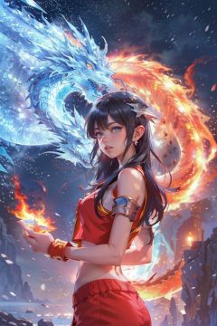 masterpiece,best quality,(photorealistic:1.4),(the collision of flames and ice:1.4),(ultra detailed:1.3),masterpiece,(流动的:1.4),(2girls:1.4),cat ears,(upper_body:1.4),unity 8k wallpaper,solo,(flames and ice burst in the air:1.3),snow,ice cube,(colorful:1.4),brilliant brilliance,ice explosion,raytracing,<lora:Light_and_Shadow:0.2>,(starry:1.2),cloud,star \(sky\),starry sky,the surging light,<lora:bingtyhuozhige_20230826123206-000010:0.9>,(looking at viewer:1.4),typing art,(ice dragon:1.3),(fire dragon (inazuma eleven):1.2),