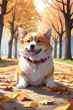 (masterpiece:1.2), best quality,PIXIV, corgi style by snatti,no humans, dog, autumn, blurry, leaf, autumn leaves, animal focus, animal, blurry background, shiba inu, outdoors, collar, depth of field<lora:corgi style by_20231101164707-000014:0.7>