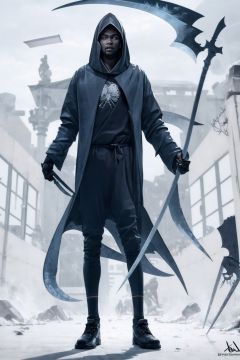 (masterpiece:1.2), best quality, Death Durant,scythe, 1boy, solo, male focus, hood, basketball, weapon, holding, glowing eyes, glowing, clothes writing<lora:Death Durant_20231101213836-000018:1>