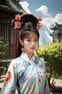 1 girl, black hair, brown eyes, chinese clothes, earrings, floral print, jewelry, lips, mole, photo \(medium\), realistic, solo, upper body, UHD, anatomically correct, best quality, 16k