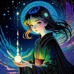 1girl,casting spells,detailed face, detailed hand,fantasy,Aurora Borealis,dramatic lighting,shadows,(art by Harry Clarke Hiroshi Yoshida)
