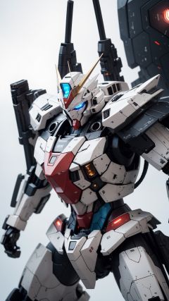 Hyperrealistic art BJ_Gundam,solo,blue_eyes,holding,weapon,holding_weapon,gun,no_humans,glowing,robot,holding_gun,mecha,flying,science_fiction,cinematic lighting,strong contrast,high level of detail,Best quality,masterpiece,White background,. Extremely high-resolution details,photographic,realism pushed to extreme,fine texture,incredibly lifelike,<lora:Gundam_Mecha_v5.2:0.6>, . Extremely high-resolution details, photographic, realism pushed to extreme, fine texture, incredibly lifelike