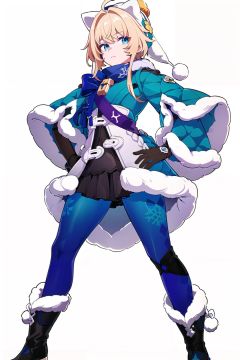 8k, best quality, masterpiece, (ultra-detailed:1.1), (high detailed skin),(full body:1.2), white background, standing, looking at viewer, solo, hand on hip,<lora:linke-v100-000029:0.8:lbw=OUTALL>,linke, 1girl, blue eyes, gloves, fur-trimmed boots,pantyhose,fur trim, blonde hair, hat, black footwear, fur-trimmed sleeves(white background, simple background,:1.2),<lora:EnvyBetterHands LoCon_beta2 辅助:0.55>, ( good hands, nice hands:0.5),(beautiful_face), ((intricate_detail)), clear face,((finely_detailed)), fine_fabric_emphasis,((glossy)), full_shot,