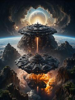 yiji,Aerial view,Rococo's artwork is a mysterious relic in the universe,enveloped in nebulae,where countless cosmic battleships are destroyed in the surrounding black hole formation,filled with the atmosphere of massive explosions and destruction,medium format photography,film,photo realism,DSLR,10k uhd,hdr,digital dappled.c4d,<lora:yijiXL-000041:0.7>,