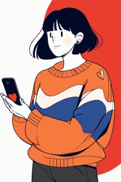 pingmian,1girl,black hair,phone,heart,sweater,long sleeves,black eyes,holding,cellphone,bangs,heart hair ornament,hair ornament,holding phone,smartphone,red nails,long hair,cowboy shot,blush,medium hair,black pants,white background,pants,orange sweater,blue sweater,turtleneck sweater,bubble,upper body,<lora:20231104-1699071455199-0010:0.7>,