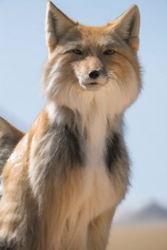 highres,sky,mountain,tibetan,fox,tibetanfox,high detail fur,looking at viewer, Fechin,calm,small eyes,