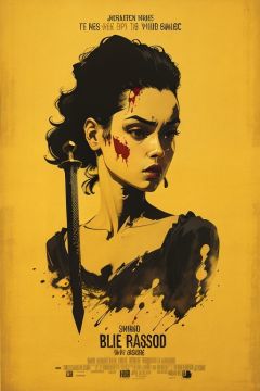((masterpiece)), best quality,MinimalistPoster, 1girl face, yellow theme, english text, blood drip,sword,