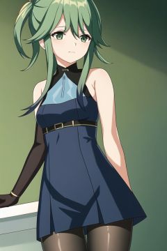 1girl, air bubble, bubble, dress, gloves, green hair, long hair, pantyhose, solo,