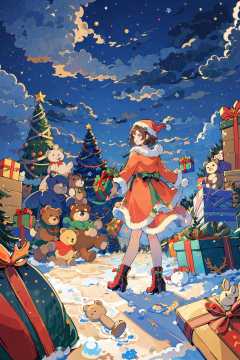 (masterpiece:1.2), best quality,PIXIV, 1girl, 1boy, gift, hat, christmas, teddy bear, brown hair, box, cloud, sky, signature, christmas tree, red headwear, gift box, stuffed toy, stuffed animal, long sleeves, short hair, night, wide shot <lora:fairy tale style-000016:0.7>