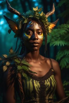 (Masterpiece), (best quality), professional photo, detailed,), (forest fairy), night elf, (firefly), handsome face, healthy dark skin, hunter costume, carrying weapons, tiger-like patterns on the face, model photography, delicious light, shadow puppetry, (wallpaper), 8k, high resolution, (specular reflection), exquisite style, natural light and shadow, real light and shadow,