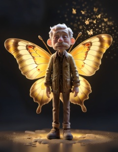 character elder man standing in Flutterfly Dreams - A young butterfly with big dreams sets off on a transformative adventure., particle volumetric dust <lora:STYLIZARD_v1:1.2> sharp focus, macro, micro, Bisque Gold ambient, sub surface scattering, glow