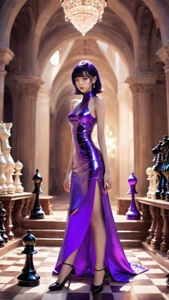 <lora:xl-shanbailing-1106model:1>,bailing_model,1girl,solo,stylish_pose,white hair,purple,full_body,masterpiece,best quality,32k uhd,insane details,intricate details,hyperdetailed,hyper quality,high detail,ultra detailed,Masterpiece,blurry background,depth of field,(wide shot, wide-angle lens,Panoramic:1.2),super vista,super wide Angle,Low Angle shooting,super wide lens,1girl,solo,chess piece,bangs,black hair,upper body,board game,(upper body:1.4),jewelry,earrings,choker,cleavage,eyes with light,