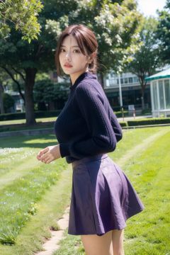 3,beautiful woman in purple skirt, fine texture, rich details, 3D