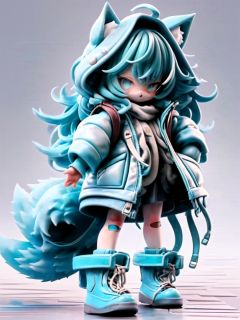 <lora:guchen-3DchaowanV1.0:1>,guchen,1girl,animal ears,long hair,bandaid on knee,boots,blue hair,blue eyes,skirt,long sleeves,standing,bangs,fox tail,black skirt,white jacket,open clothes,chibi,3D,