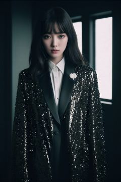 breathtaking lovecraftian horror , eldritch, cosmic horror, unknown, mysterious, surreal, highly detailed, Fujifilm FP-100C, Tom Ford sequin-embellished tuxedo jacket with satin lapels, positive space composition, RickOwens(瑞克·欧文斯), girl, 1girl, solo . award-winning, professional, highly detailed