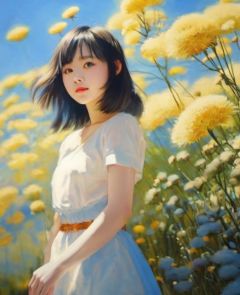 shuicai,flower, 1 girl, perfect light and shadow,Background blurring,Fuzzy,blue sky, <lora:水彩风格_花卉XL:0.6>, masterpiece, best quality,