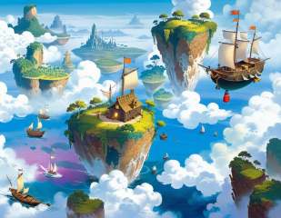 The Floating Isles, A brave explorer sets sail to discover a cluster of islands that float high above the clouds. character, detailed, sub surface scattering, sharp focus <lora:OldillXL_0.4_RC:0.6>