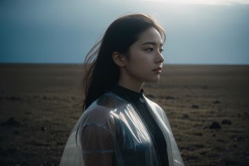 analog film photo chinese girl, cinematic film still, ((Establishing_Shot)), ((looking away)), expression of enjoyment, an ultra high definition professional high fashion portrait full length photograph, a model wearing a transparent pearlescent raincoat and neon visor in an icelandic black rock environment at dawn, no artefacts, extremely detailed, stark, refraction, shallow depth of field, volumetric light and shadow, ray tracing, light rays, shallow depth of field, vignette, highly detailed, high budget, bokeh, cinemascope, moody, epic, gorgeous, film grain, grainy . faded film, desaturated, 35mm photo, grainy, vignette, vintage, Kodachrome, Lomography, stained, highly detailed, found footage