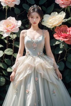 Masterpiece, Roses, Roses, Gems, Luminescence, Pearl, Agate, Emerald, Jade stone, princess, Crown, Huge flowers, Flowers, Flowers, Flowers, Flowers, Black dress, Medium chest, Lovely, Big eyes, anatomically correct, high details, best quality, HD, 16k, Huge flowers, All flowers, Sparkling clothes, Dried twigs, flowers, sparkling clothes, clothes Dried twigs plum dress