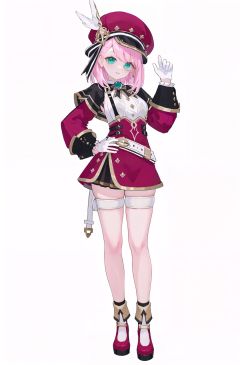 8k, best quality, masterpiece, (ultra-detailed:1.1), (high detailed skin),(full body:1.2), white background, standing, looking at viewer, (solo:1.3), hand on hip,<lora:Charlotte-v100:0.8:lbw=OUTALL>, Charlotte, 1girl, white gloves, hat, pink hair, red headwear, aqua eyes, leg grab,monocle,(white background, simple background:1.4),<lora:EnvyBetterHands LoCon_beta2 辅助:0.55>, ( good hands, nice hands:0.5),(beautiful_face), ((intricate_detail)), clear face,((finely_detailed)), fine_fabric_emphasis,((glossy)), full_shot,