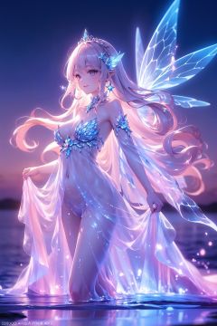 a woman in a blue dress standing in water with a star in her hand, ethereal essence, astral fairy, ethereal anime, astral ethereal, beautiful celestial mage, luminous water elemental, ethereal fantasy, ethereal!!!, water fairy, flowing magical robe, ethereal!!!!!!!, white glowing aura, ethereal beauty, a stunning young ethereal figure, anime fantasy illustration, ethereal aura