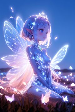 anime girl with glowing wings in a field of flowers, big white glowing wings, astral fairy, neon wings, wings made of light, beautiful fairy, glowing butterflies, glowing angelic being, beautiful fairies, fairies have wings, ethereal wings, neon light and fantasy, beautiful digital art, beautiful digital artwork, glowing with magic, fairy wings, digital art fantasy, faerie
