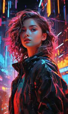 xsgb,<lora:xsgb:1>,Portrait,(1girl:1.5), (Dynamic pose), (Futuristic background), a dynamic and futuristic portrait of a girl in a dynamic pose against a futuristic backdrop, (Neon lights:1.2), (Energy radiating:1.1), creating an electrifying and unconventional visual experience.