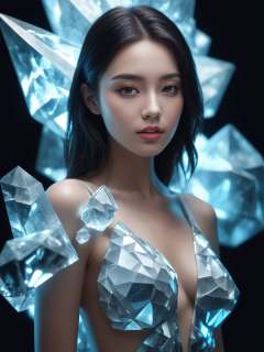 Real photos, cinematic, fashion photo of a beautiful girl in the style of neomorphism, the transformation of minerals into polymorphs, glowing crystals, hyper detailed, photorealistic, detailed glow, ambient occlusion, ambient light