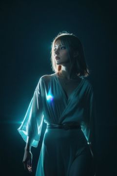 cinematic film still (Night), (Wilderness), ((nature)), (Holography), (((cowboy shot))), upper body, violet light, 1girl, looking away, a Photorealistic dramatic hyperrealistic render of a glamorous beautiful Female smoke by Ken Brower and Deborah Ory of Dance, Lois Greenfield, Flowing cloth, Beautiful dynamic dramatic dark moody lighting, volumetric, shadows, cinematic atmosphere, Octane render, 8K, (holo glass), . shallow depth of field, vignette, highly detailed, high budget, bokeh, cinemascope, moody, epic, gorgeous, film grain, grainy,Holography