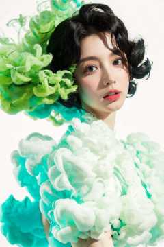 (1girl:1.2),stars in the eyes,smoke surrounds the girl,white clothes,(full_shot:1.2),(light green theme:1.2),(pure girl:1.1),curly hair,short hair,(black_background:1.2),(full_shot:1.1),depth of field,adhesion,<lora:smoke_20231011231151-000007:0.8>,smoke,