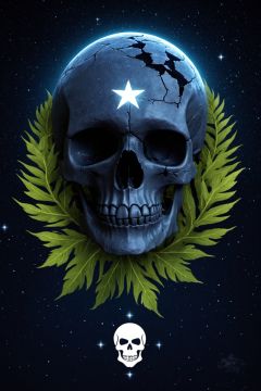 logo,(masterpiece, best quality:1.1), (leafart, leaf:1.2), (skull:1.1), teeth, no humans, sharp teeth, horror \(theme\), outdoors, dryad, night, starry sky
