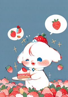 masterpiece, high quality,apple,berry, blueberry, cake, cake_slice, camellia, cherry, cream, dessert, food, food_focus, food_print, fork, fruit, leaf, melon, no_humans, orange_\(fruit\), red_flower, red_rose, sparkle, strawberry, strawberry_hair_ornament, strawberry_panties, strawberry_print, strawberry_shortcake, tomato, watermelon, whipped_cream, solo, open_mouth, blue_eyes, simple_background, white_background, holding, closed_eyes, heart, fang, speech_bubble, pokemon_\(creature\), blush_stickers, holding_food, thought_bubble, animal_focus<lora:Keai-000009:1>