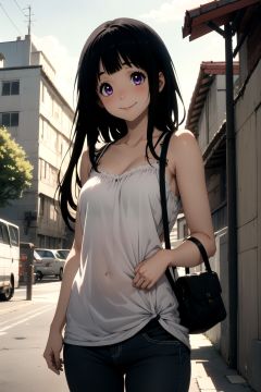 masterpiece,best quality,extremely detailed 8K wallpaper,1girl,purple eyes,Chitanda Eru,looking at viewer,standing,outdoors,closed mouth,close-up,smile,casual,