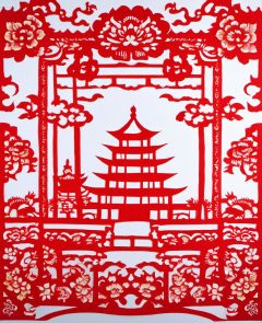 cutpaper,a temple, chinese_paper_cut, square composition, white background, <lora:传统剪纸风格_V1.0XL:1>, masterpiece, best quality,
