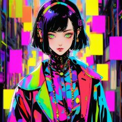 1gril, , junji_ito style, , wlpstyl, , Chirico, Color splash, short Female Rapper, Robotic, tilt shift, Victorian Gothic Art, 80mm, Acid colors flakes, sfumato,