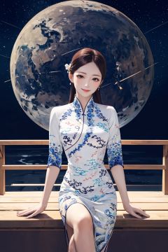 masterpiece,best quality,1girl,smile,sitting,upper body,china dress\(haihang\),long hair,<lora:踏山听海【空姐suit】:0.9>,Celestial Bridge Leading to the Stars,