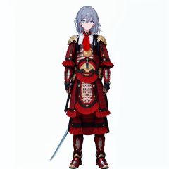 (masterpiece:1.3), (the best quality:1.2), (super fine illustrations:1.2), (Masterpiece), high quality, high detail, ((white background:1.2)), looking at viewer, (SOLO:1.4), outline, , simple background, blue eyes,hair between eyes,armor,shoulder armor,fu hua,gloves,grey hair,braid,messy hair,sheathed,sword,ponytail,jewelry,pauldrons,full armor,gauntlets,breastplate,