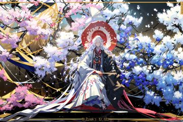 -ghost nocturnal, long hair, solo, umbrella, japanese clothes, lantern, sakazuki, 1boy, male focus, very long hair, alcohol, white hair, kimono, cup, flower, oil-paper umbrella, sitting, smile, cherry blossoms, looking at viewer, closed eyes, sake, wide sleeves, paper lantern, petals, holding<lora:ghost nocturnal-000018:1>