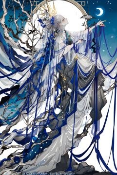 (masterpiece:1.2),best quality,PIXIV,ghost nocturnal,1girl,solo,long hair,moon,crescent moon,hair ornament,sky,dress,very long hair,tree,jewelry,sitting,branch,hair rings,grey hair,hanfu,night,star \(sky\),leaf,see-through,<lora:ghost nocturnal-000018:1>,<lora:neg4all_bdsqlsz_V3.5:1>,