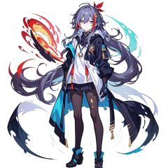 (masterpiece:1.3),(the best quality:1.2),(super fine illustrations:1.2),(Masterpiece),high quality,high detail,(white background:1.2),looking at viewer,(SOLO:1.4),outline,simple background,, long hair,1girl,hair ornament,multicolored hair,fu hua,messy hair,hair between eyes,solo,